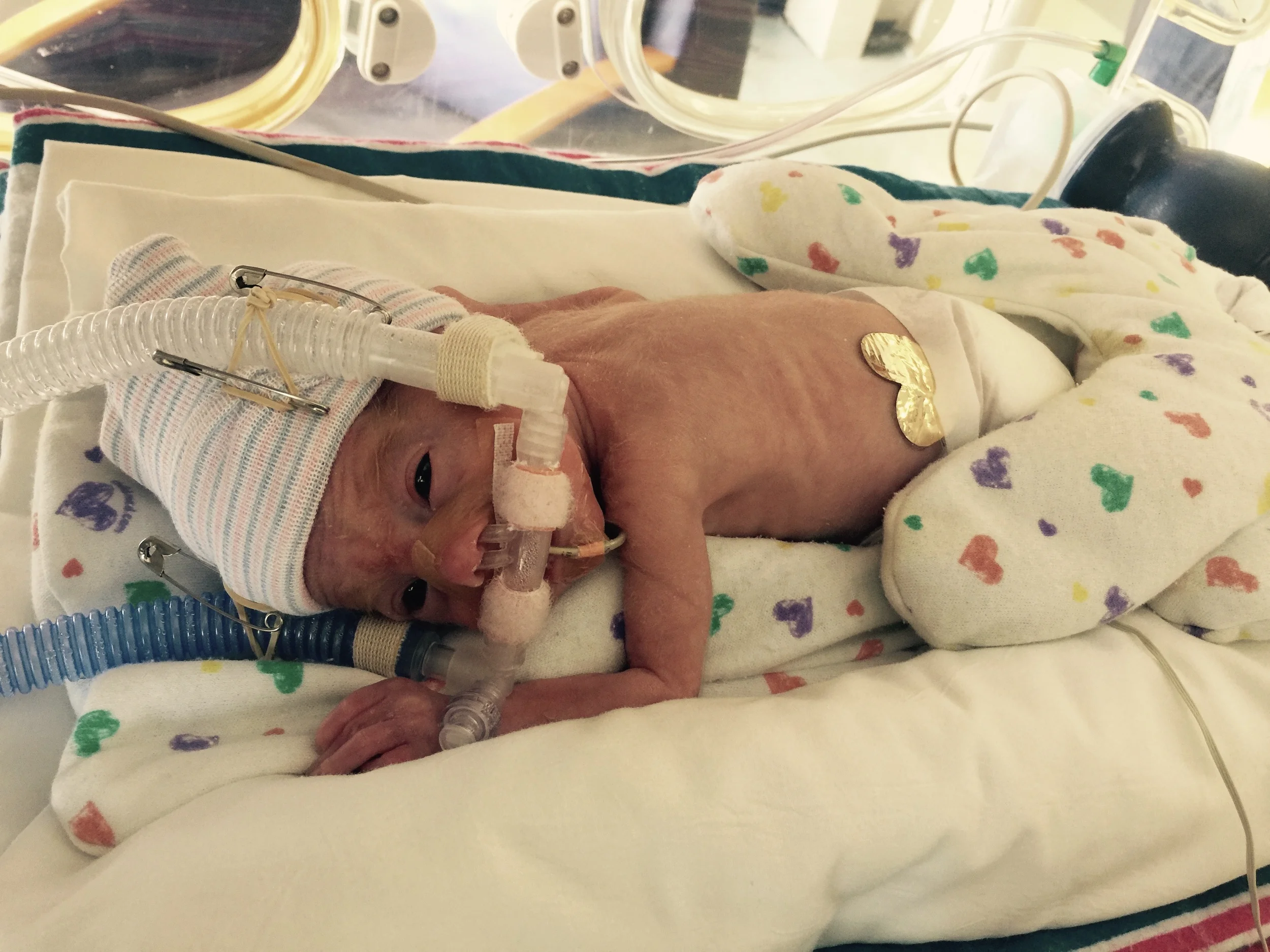 Today was a great day for all of the kiddos. Audrey and Thomas seem to be still enjoying the effects of their diuretics, and Charlotte is behaving similarly without any drugs to help. They're all breathing room air and having only minimal desats, almost all of which are self-limiting. And they're tolerating their feeds well. Thomas is finally up to his max feed amount too, so I'm guessing he'll start to gain weight again soon, maybe even tomorrow. Will and I held Charlotte and Audrey, respectively, and they did beautifully. They both have a bit of tachycardia on occasion, but no one seems to be concerned. Overall, the doctors and nurses are quite positive. The attending physician was chatting with us yesterday about how pleased he is with how they're doing and how he expects that they'll go to Harvard some day...of course, Will amended that sentiment to Stanford. Either way, this mom is happy at the thought and so grateful for their tiny steps of progress this past month.