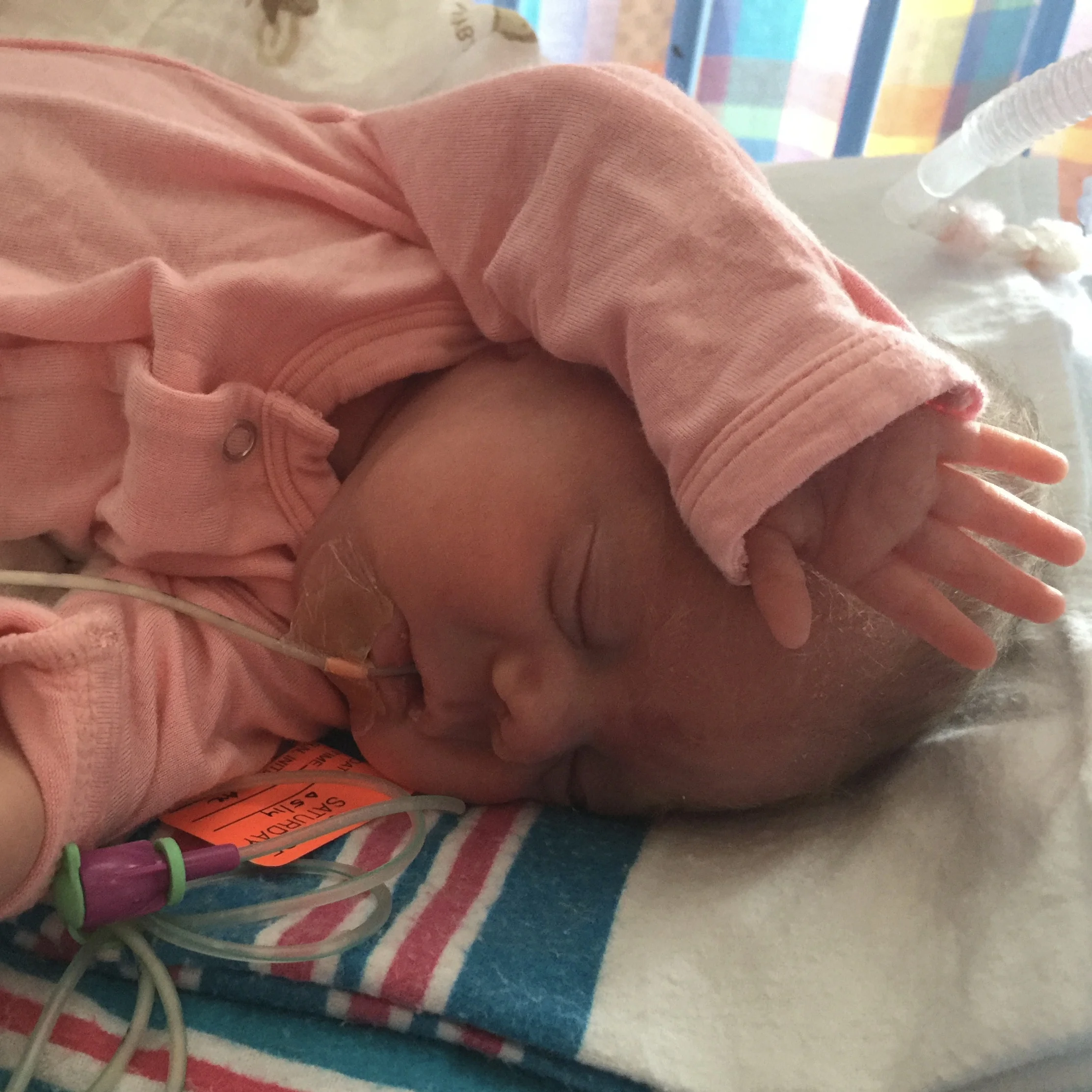 Audrey might be "flying" as far as breathing is concerned, but she sure seems to have trouble gaining weight. They feed the babies based upon current body weight (standard formula that they use for all of them), so my hoped for theory is just that she has a faster metabolism and needs to consume more than their formula dictates in order to consistently put on weight (rather than the thought that there's something bad that's causing her to have this issue). They increased her feeds yesterday, and I'm hopeful that they'll keep them higher despite the fact that she's lost weight both of the past two days. She's still in her isolette, and I'm in no rush to get her out until she starts gaining a bit better.